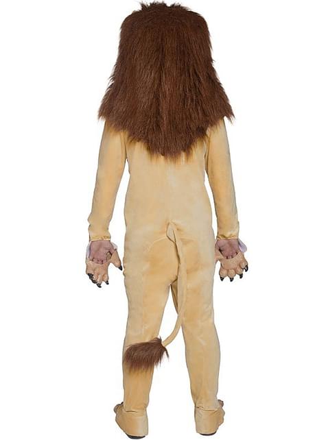 Includes a jump suit with tail, cat paws, roaring lion head mask and claw overshoes.